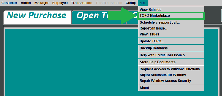 1) In TORO on the Main Screen, go to the HELP menu.