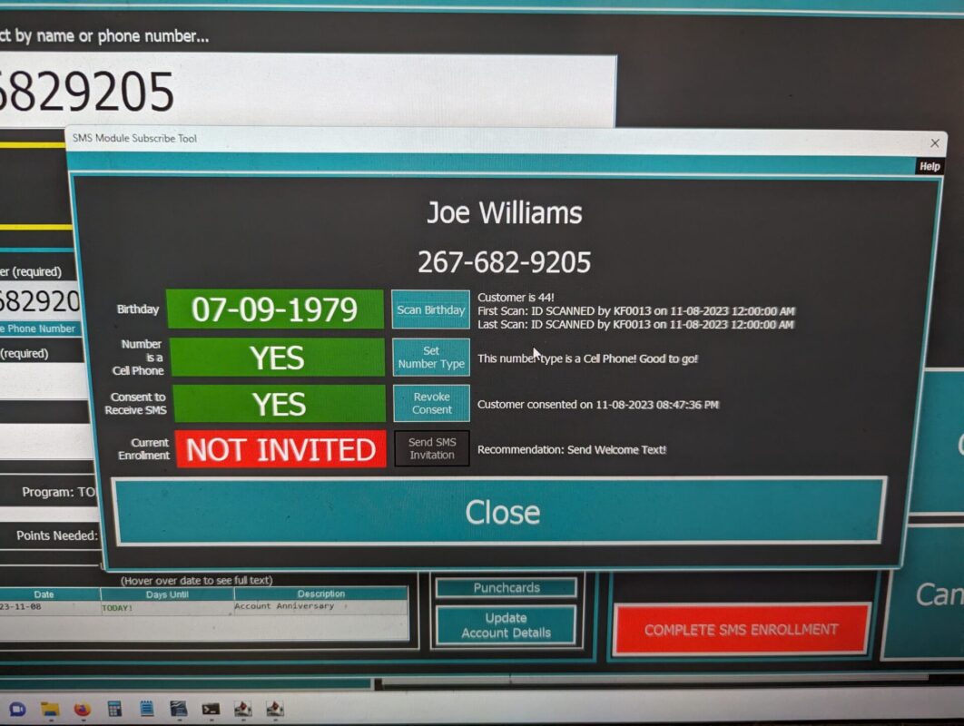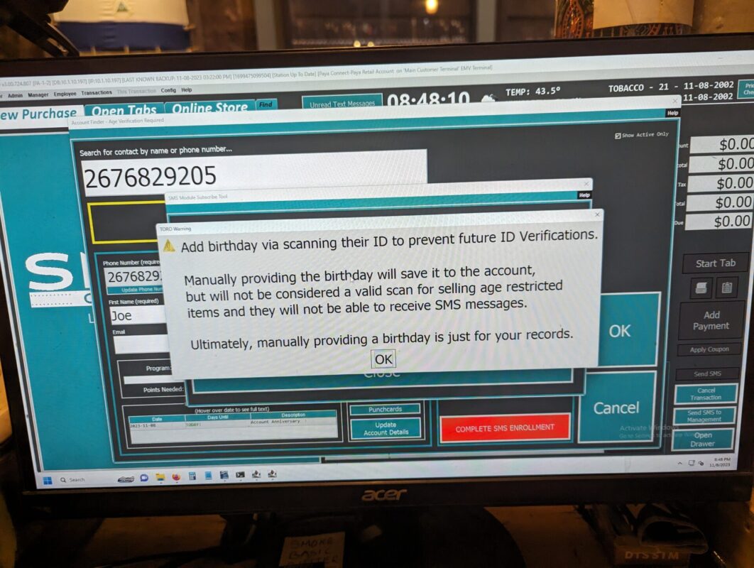 3. If the birthday is valid and the customer is 21, then the employee will check to ensure the number provided is a cell number.