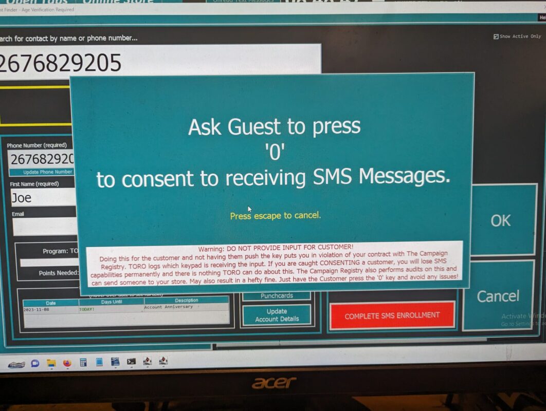 First, this is a requirement from the TCR that we we must have a customer facing Keypad for them to use to input their number and to give consent to your employees to send a text message.